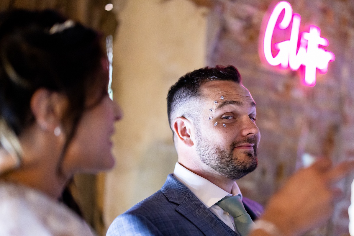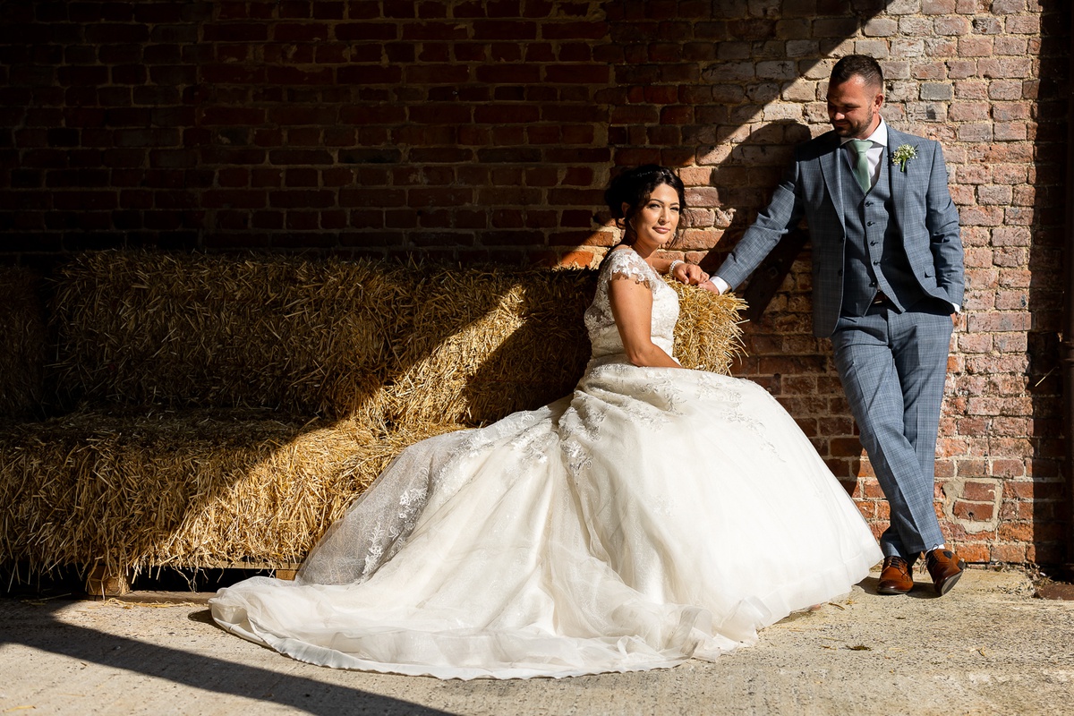 With its cozy 8-bedroom country farmhouse, everything is conveniently at your doorstep. I admired the rooms with their large windows, perfect for preparation photos. The beautifully finished kitchen and conservatory were ideal for the bride and her entourage. The onsite house allows for easy access to the old Grain Barn and surrounding fields for the ceremony.